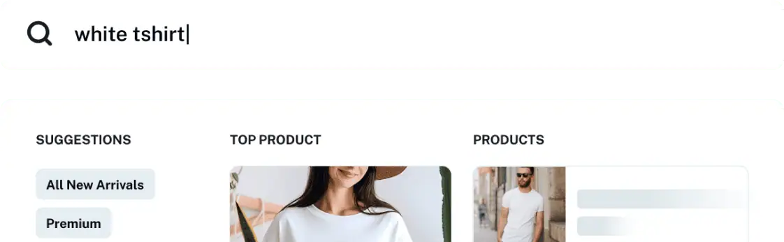 La Búsqueda garantiza que tus clientes obtengan los resultados más relevantes a través de más de 100 funciones como Autocompletar, Corrección de Errores Tipográficos, y más.