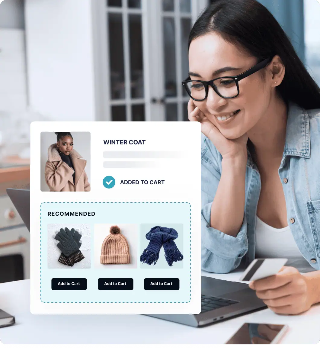 El Recomendador sugiere productos relevantes basados en los comportamientos anteriores de los usuarios de tu sitio web, impulsando las ventas adicionales, las ventas cruzadas y aumentando el valor medio de los pedidos.